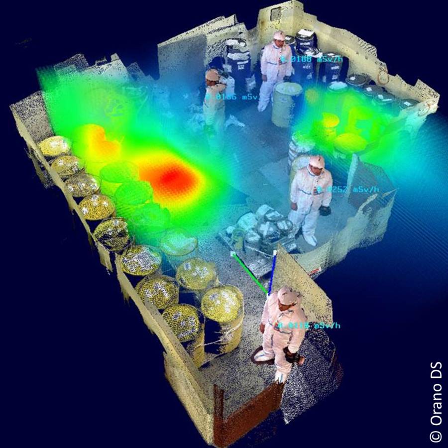 MANUELA™ est un outil développé par Orano DS pour la construction de cartographies radiologiques et topographiques en 3D. Il offre la possibilité d'associer en temps réel une mesure radiologique, telle que le débit de dose, à sa position dans l'espace ainsi qu'à son contexte topographique. Si ce relevé est suffisamment exhaustif et complet, la bibliothèque d'outils MANUELA™ permet de localiser spatialement les points chauds et/ou les zones radioactives, et de les caractériser...