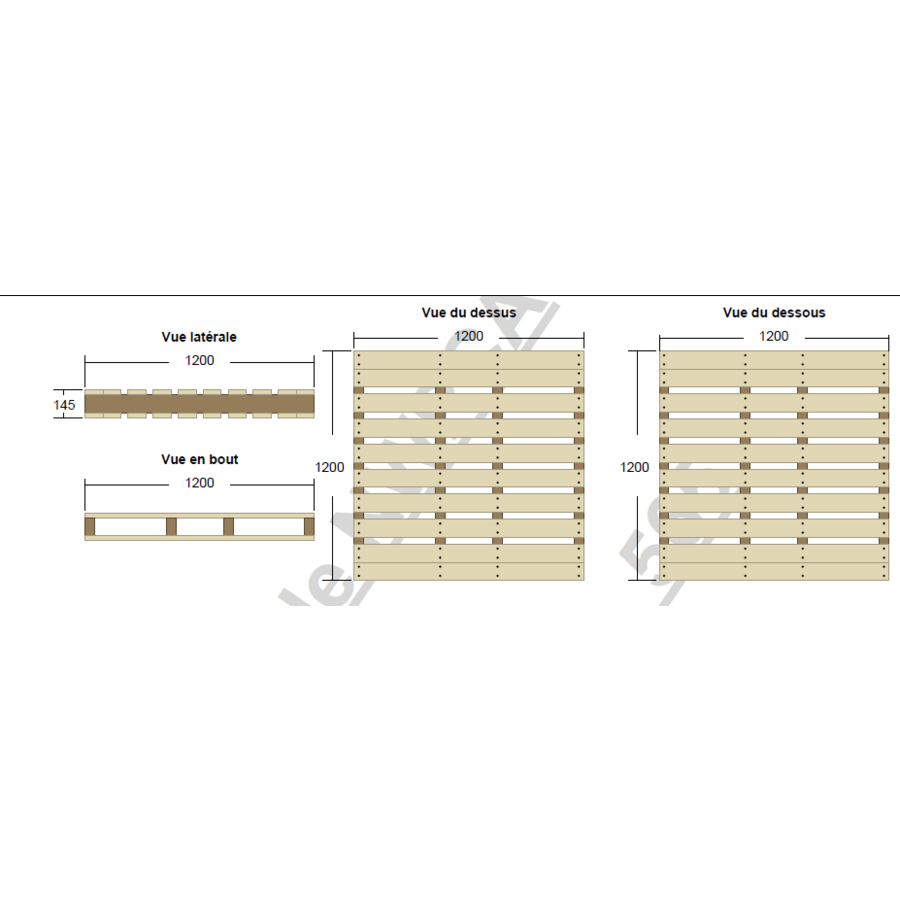 Propose palettes en bois 1200x1200x145mm conçues pour supporter de fortes charges :